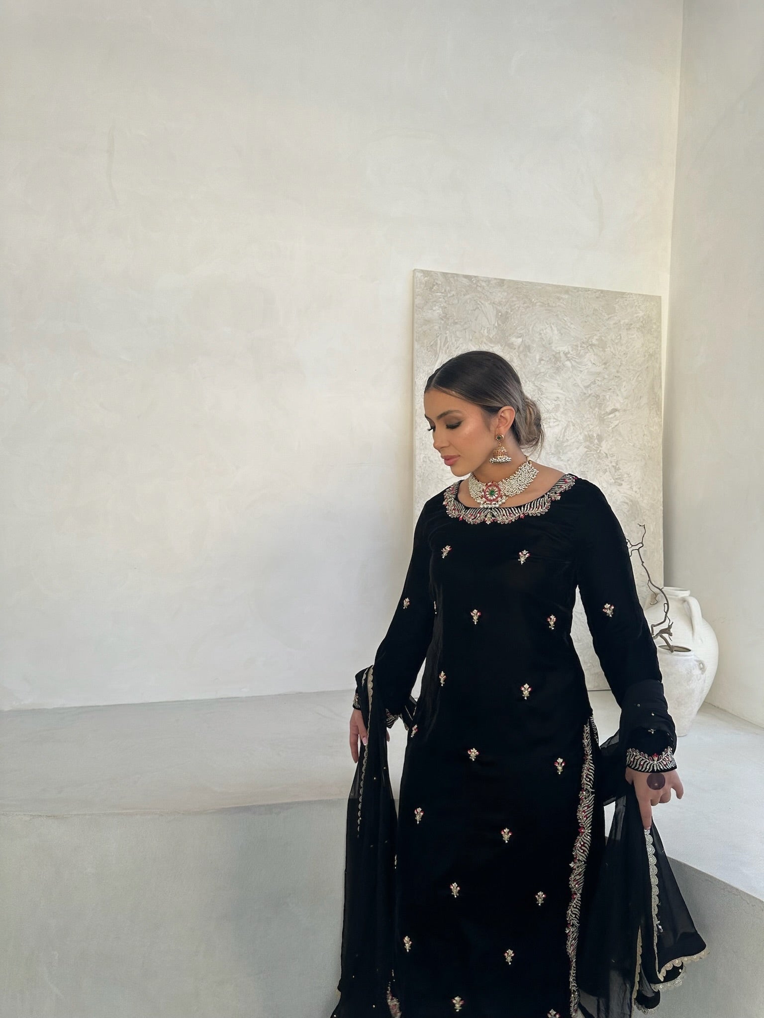 Chiffon dupatta with a scatter of sequin and lace trimming