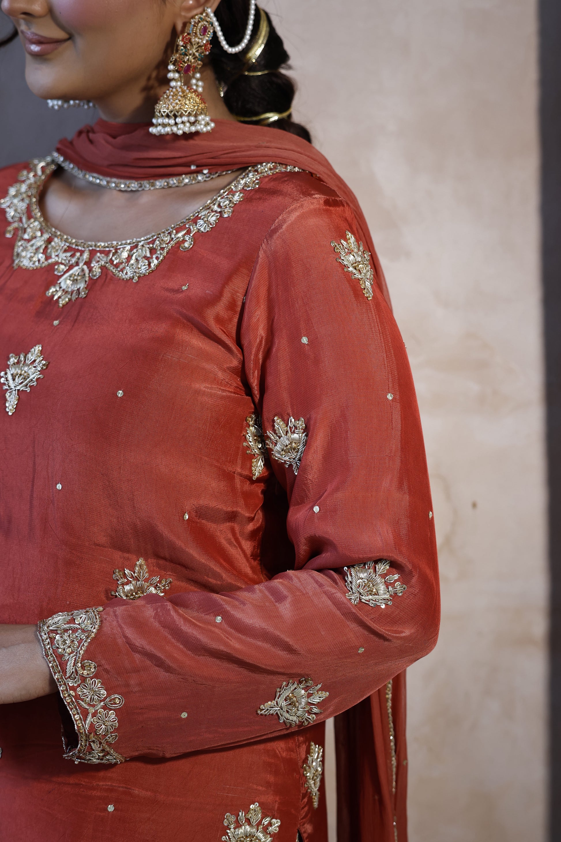 - Russian silk kameez with hand embellishment
