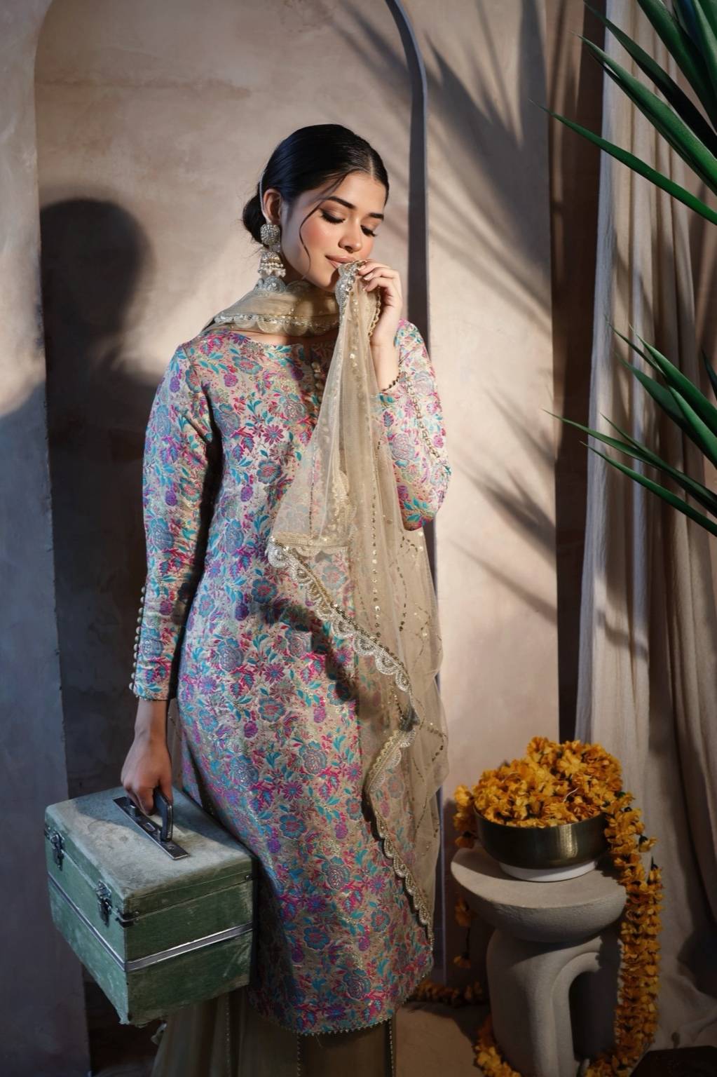 - Banarsi kameez with lavender print